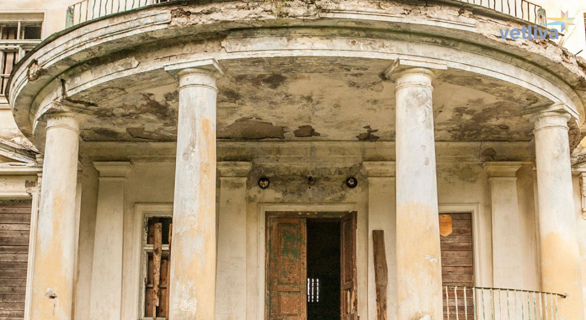 На втором этаже есть балкон, выходящий из парадного зала, с которого можно посмотреть на живописный парк и фонтан. Если заглянуть внутрь здания, то можно увидеть, что внутренняя красота усадьбы частично сохранилась: старинная плитка, лестничные перила, подвал. На потолках можно разглядеть декорированные балки и перекрытия.