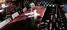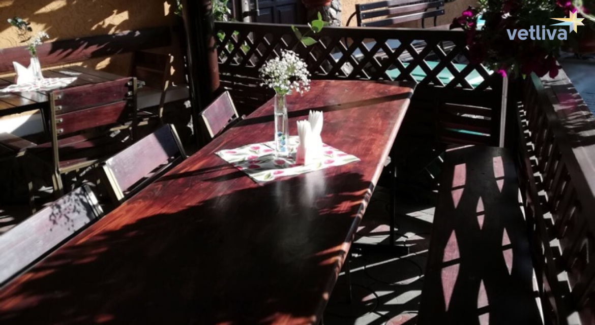 В меню предлагается европейская и белорусская кухни. Блюда из мяса и рыбы, свежие салаты, ароматные драники, напитки, коктейли, сладкие десерты, разливное пиво и многое другое. Бар проводит организацию торжественных мероприятий, праздников, юбилеев.