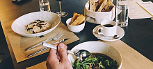 Можно выбрать столик со стульями, диванчиками или отправиться в бар.