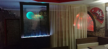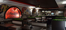 Зал кафе оформлен в восточном стиле. В помещении установлен водопад, около которого так приятно отдыхать, вкушая восточные деликатесы.