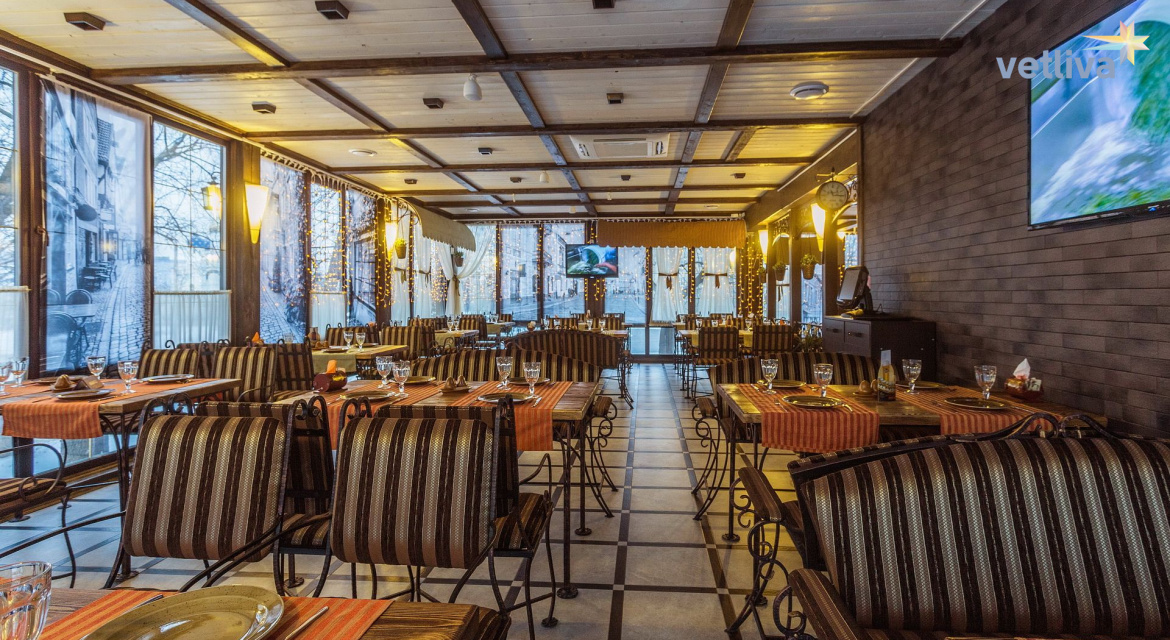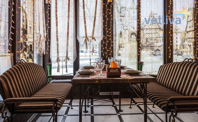 В стенах ресторана вас поглотит чарующая атмосфера старого Вильнюса: эпохальная кованая мебель в стиле XIX века, фотографии на шторах, передающие шарм небольших виленских улочек, завораживающие элементы декора и живописный панорамный вид на парковую зону водохранилища. Даже меню, или «Книга рецептов», удивит своей красотой, попав к вам в руки. И, конечно, «Вильна» — то место, где царят тепло и уют.
